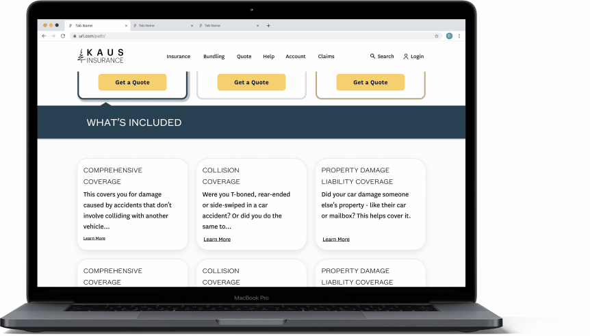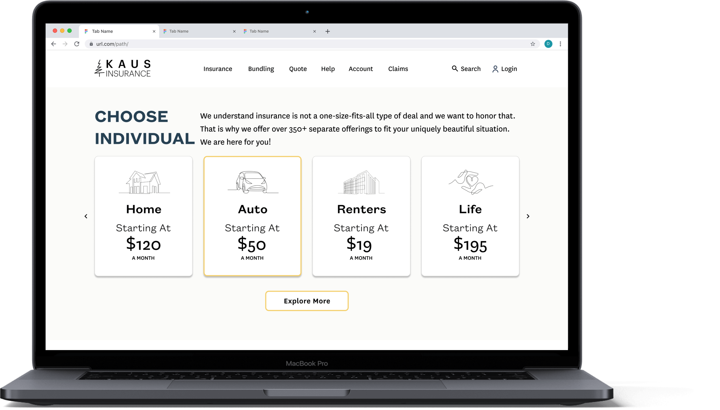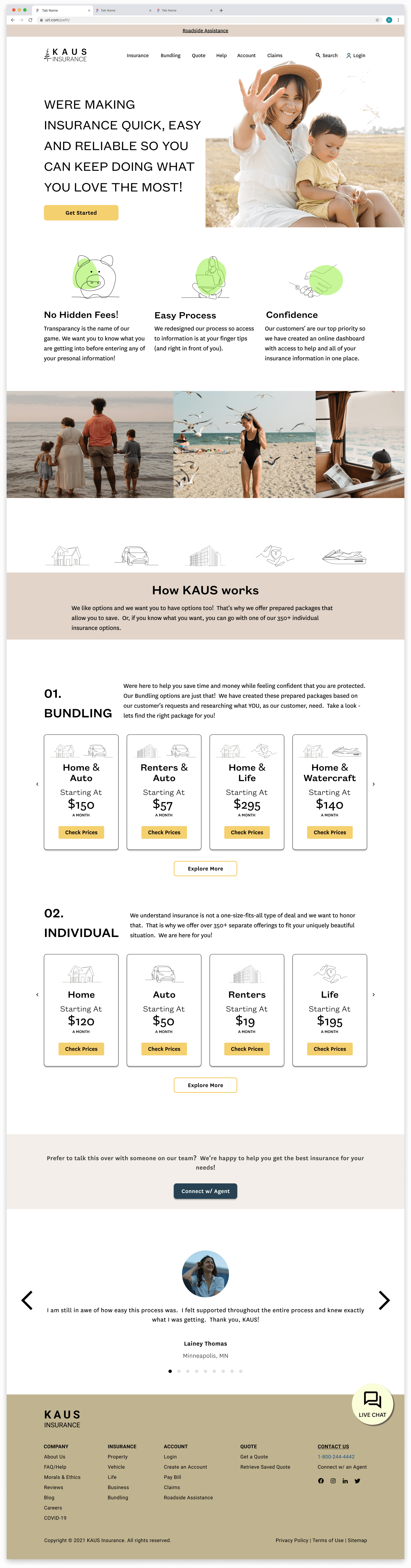 KAUS is missing growth and sales opportunities with younger age groups looking for easy solutions to purchasing insurance online. The goal for this project is to create a design that is user-centered first and foremost.