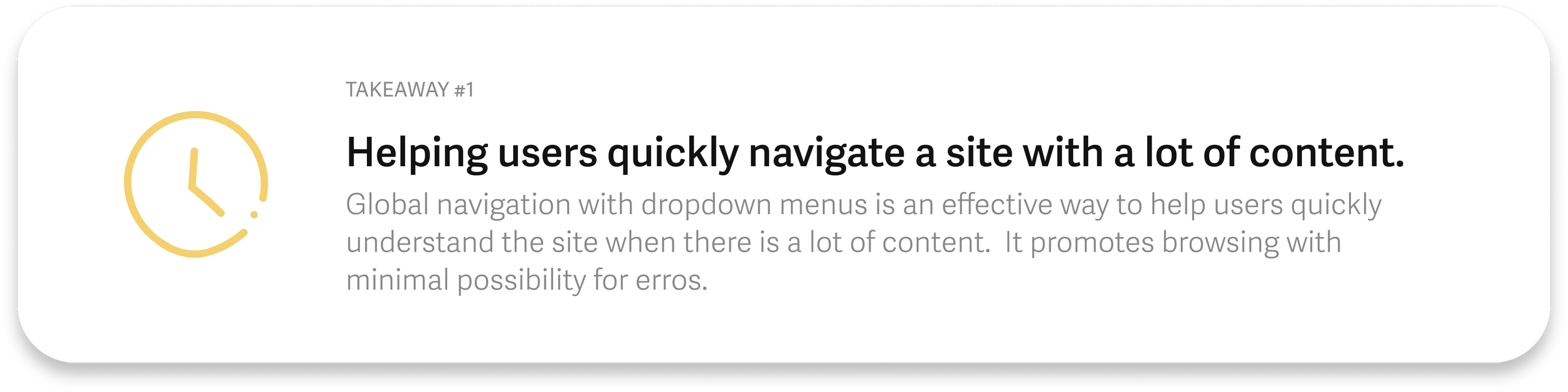 The dropdown allowed the user to see the entire navigation system at a high level to create autonomy and minimal possibility for error.