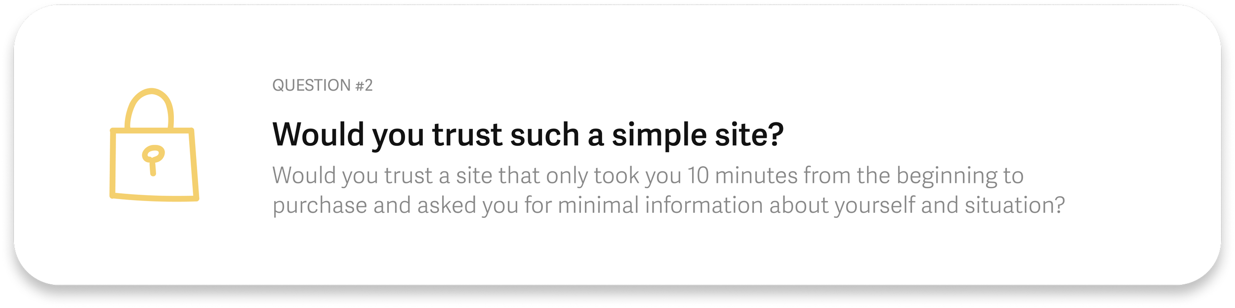 The belief was that if the design is simple and guides the user through the process, and information is fully transparent, users will have a better user experience and trust the company more. That’s what was being tested.