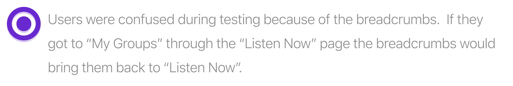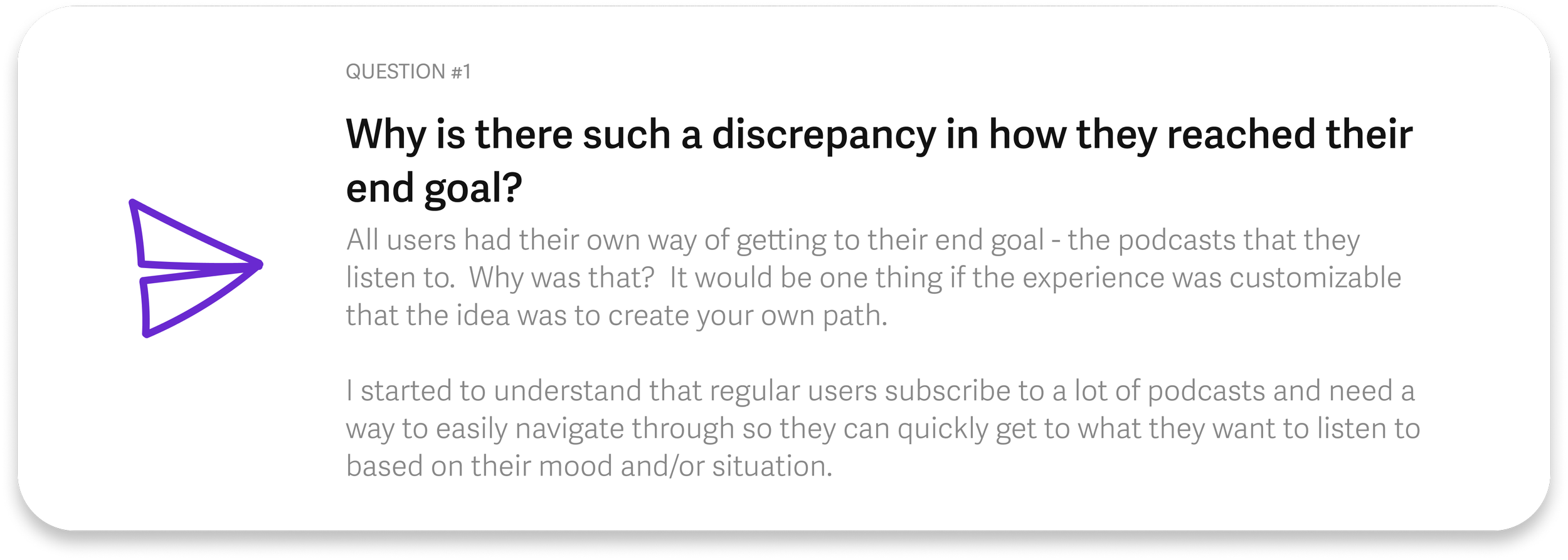 The “regular” Apple Podcast user feels overwhelmed and confused when finding their content. The challenge here was to find a way to eliminate those feelings for users and help them get to what they want quicker.