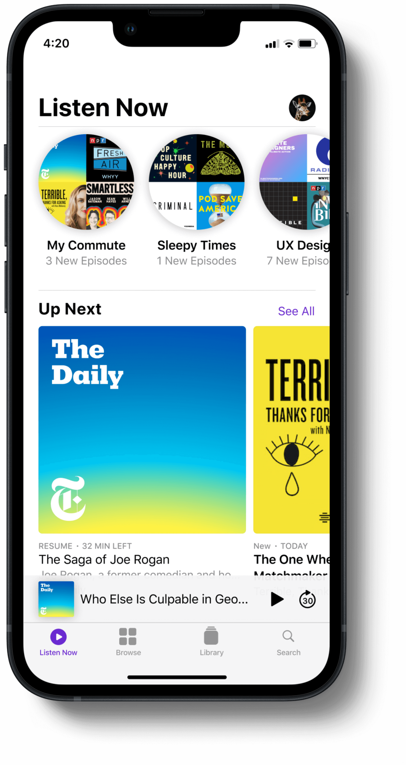 Design a new Apple Podcast experience made for a user's unique lifestyle.